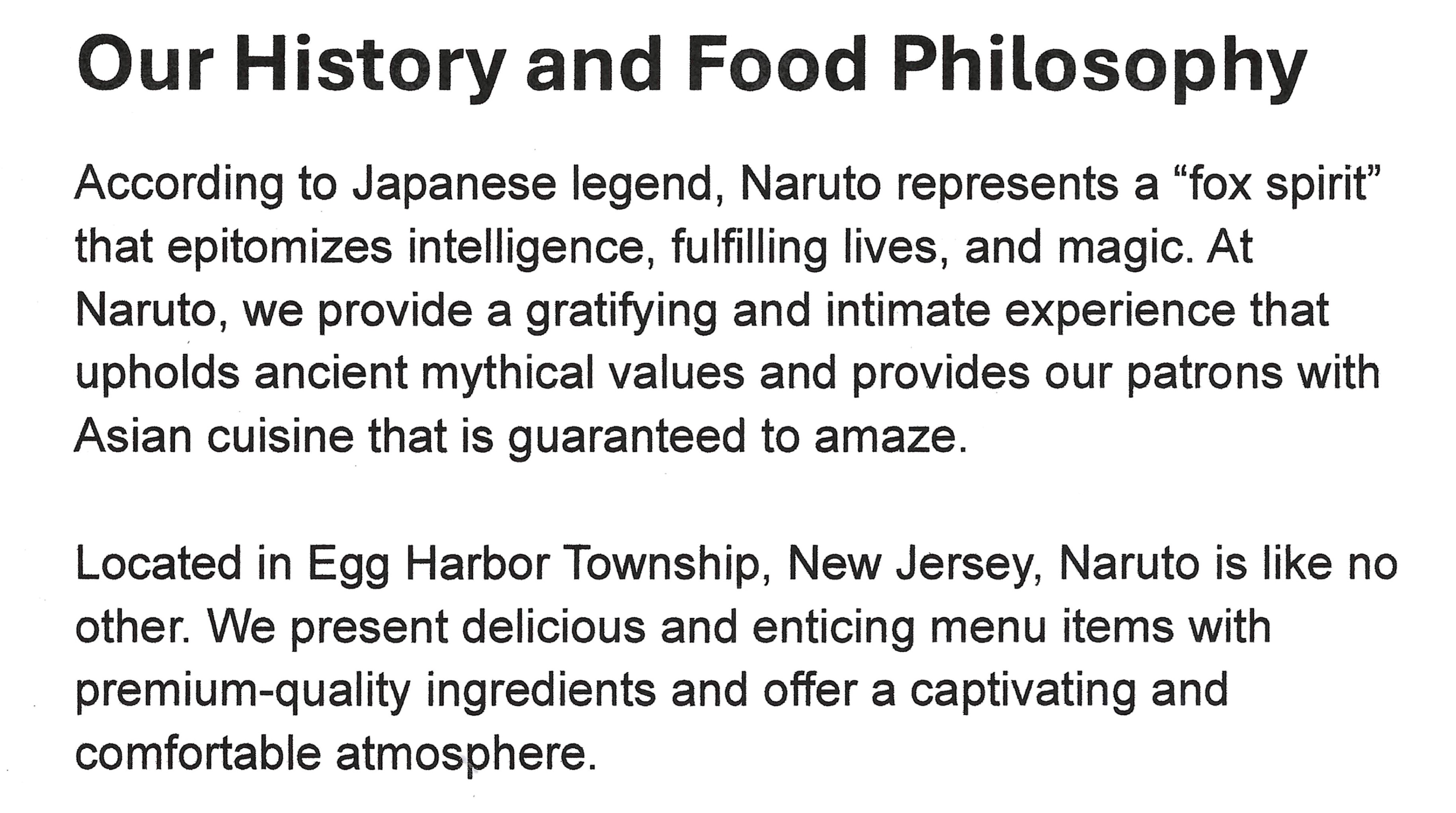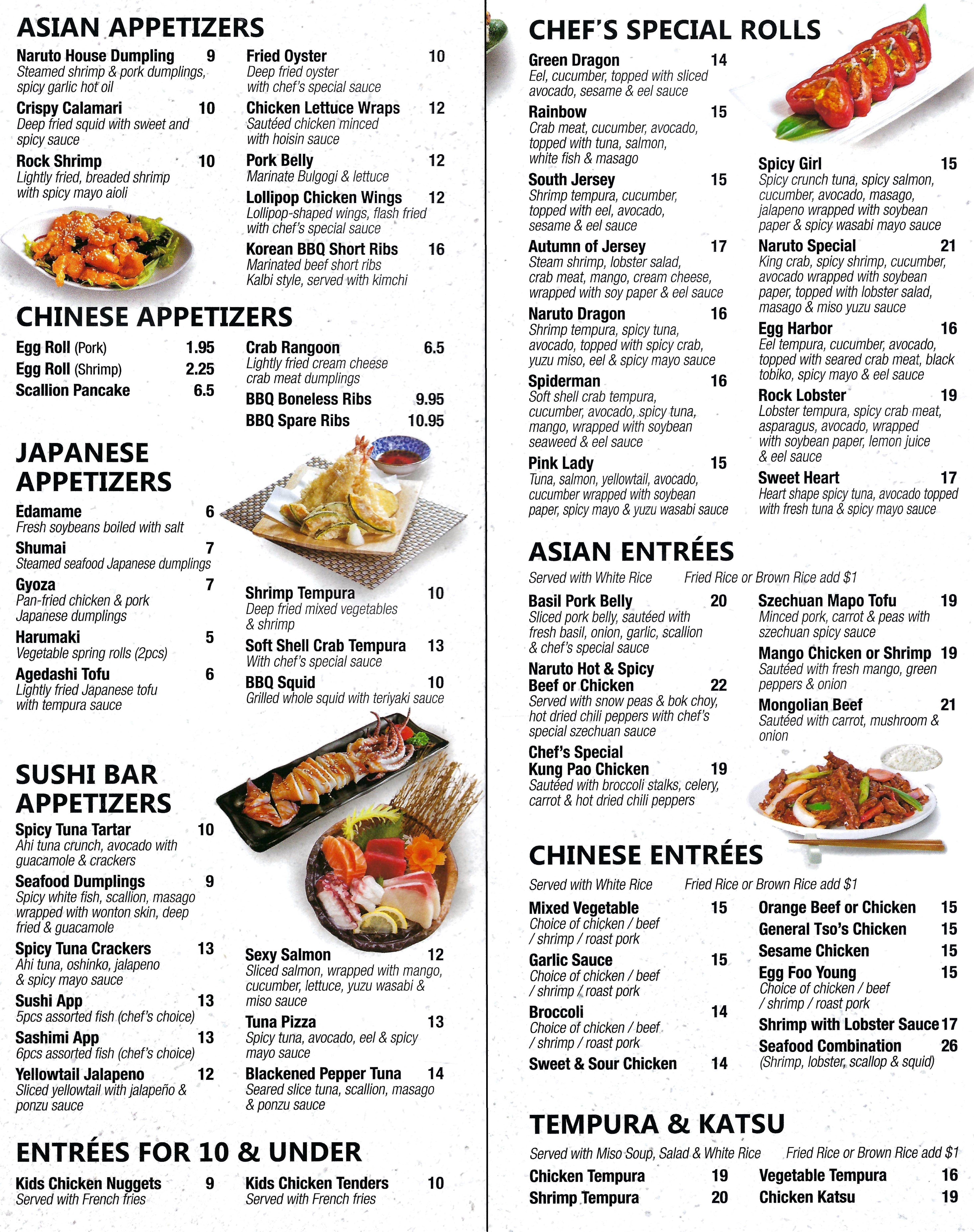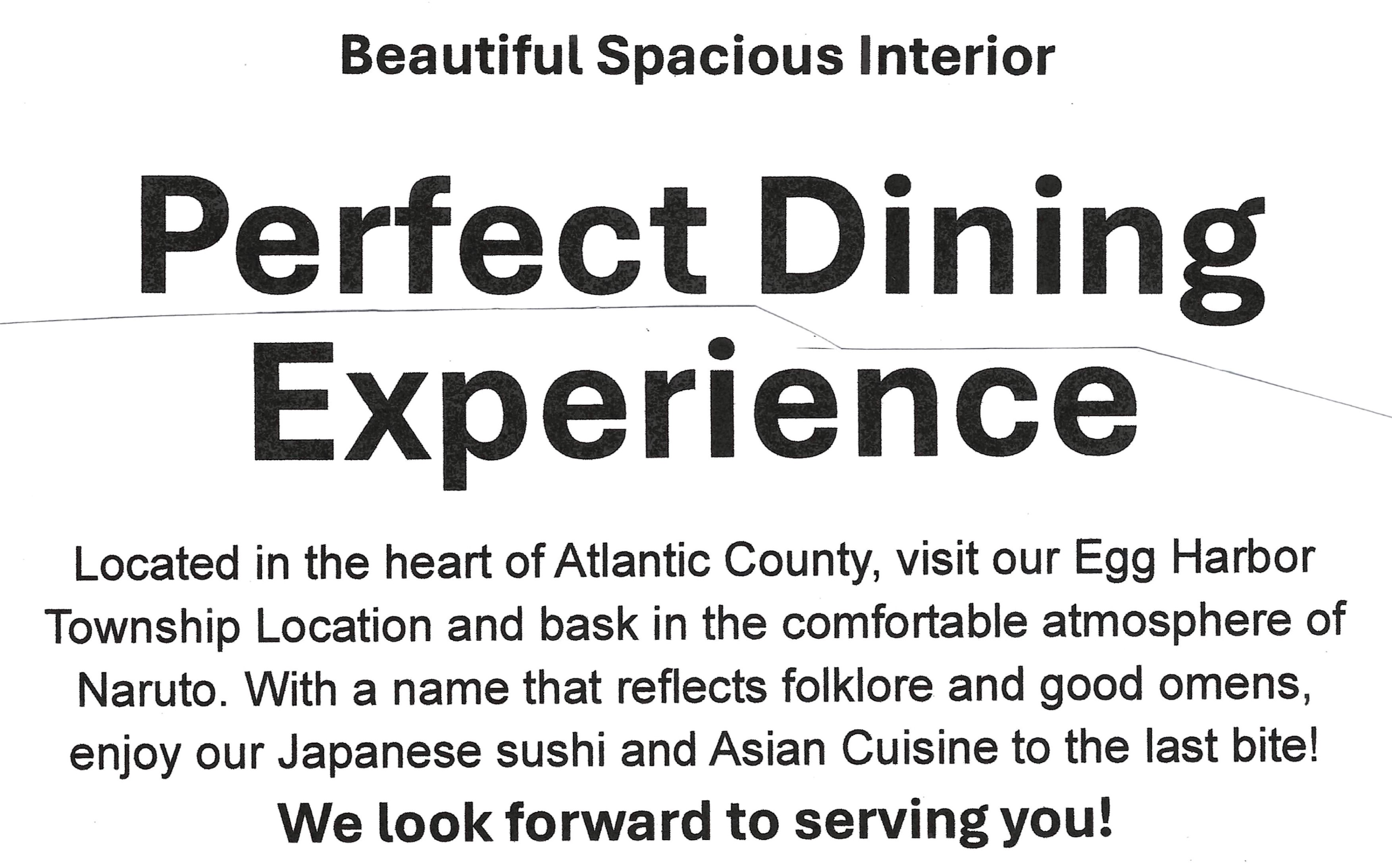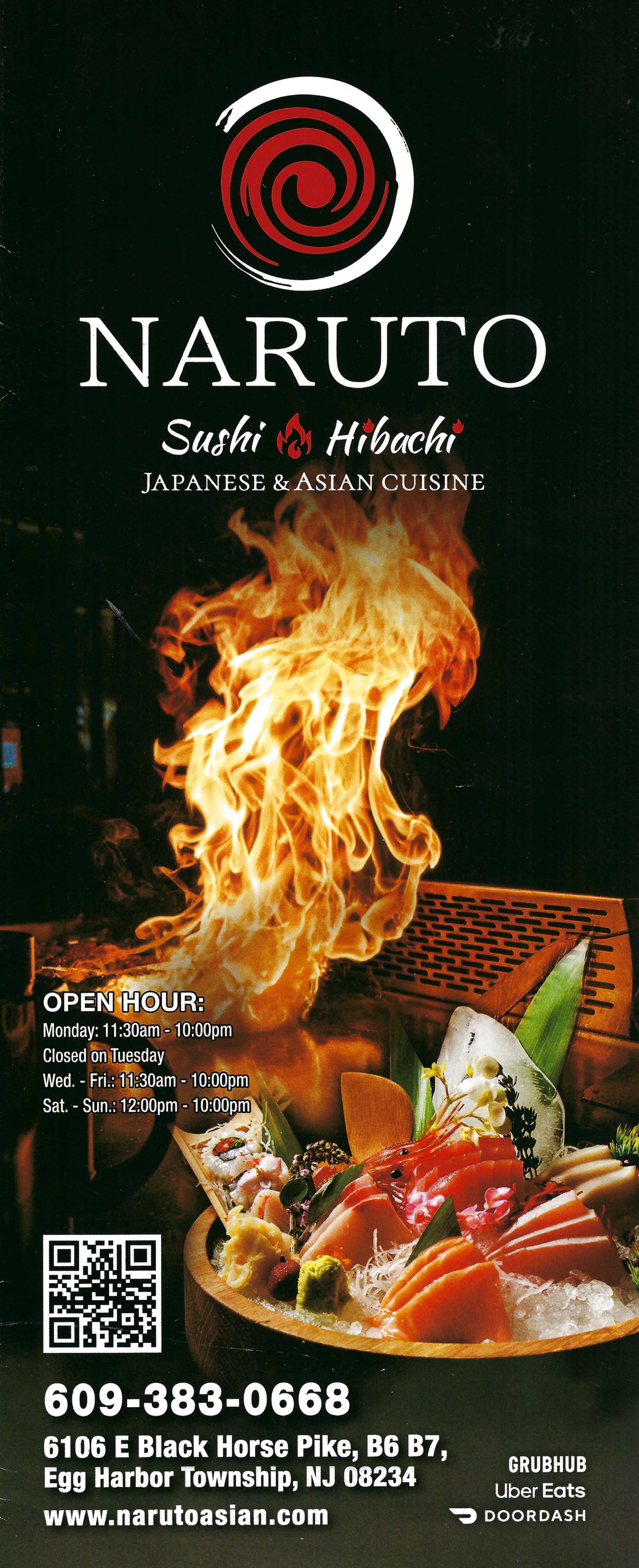 609-363-0668 6106 E. Black Horse Pike, Egg Harbor Twp., NJ 08234 (Risley Commons Shopping Plaza) Visit our website - www.narutoasian.com